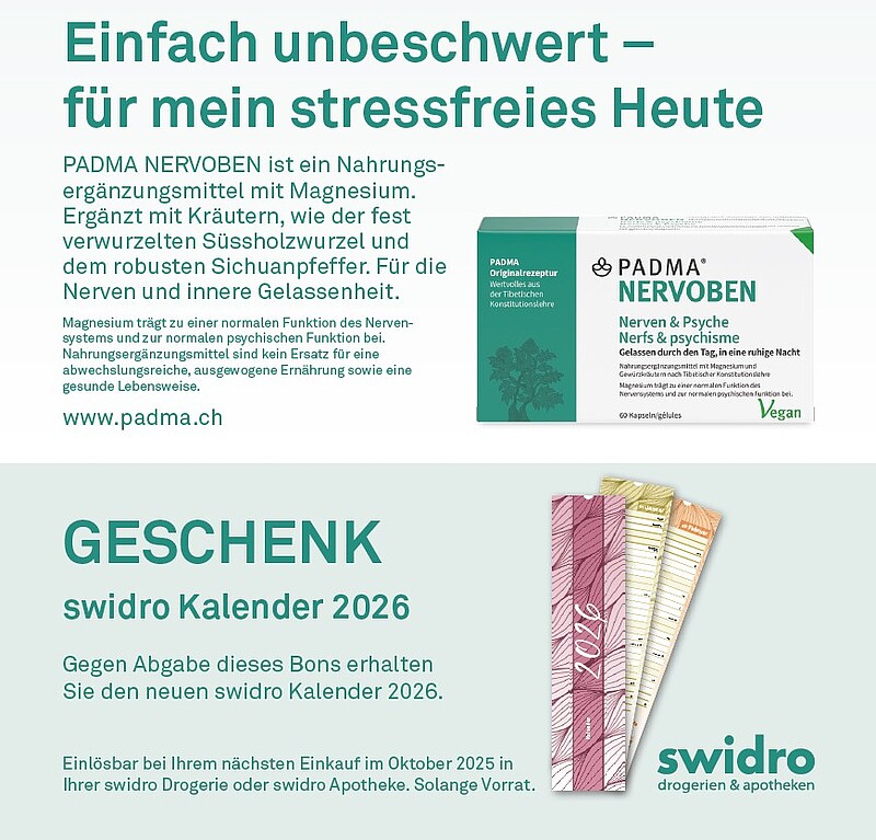 Gegen Abgabe dieses Bons erhalten Sie den neuen swidro Kalender 2026.